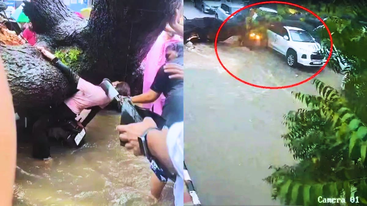 घटना का एक वीडियो सामने आया है जिसमें देखा जा रहा है कि बाइक पर सवार एक महिला पेड़ के नीचे दब गई। वीडियो में एक कार के ऊपर भी पेड़ दबा दिख रहा है। महिला को स्थानीय लोगों ने किसी तरह से बचाया। उसके कुछ चोटें भी लगी हैं।