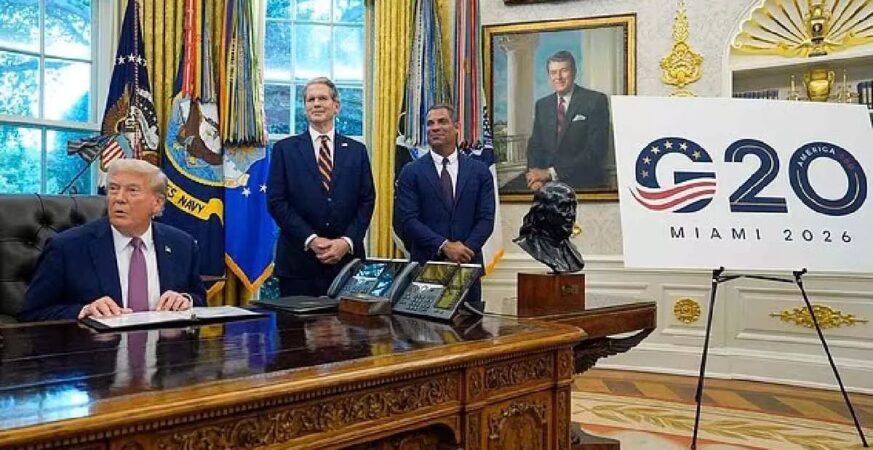 G-20 Summit 2026: अमेरिका अगले साल 2026 में विश्व नेताओं के समूह-20 (जी-20) के शिखर सम्मेलन की मेजबानी राष्ट्रपति डोनाल्ड जे. ट्रंप के फ्लोरिडा के डोरल स्थित गोल्फ कोर्स और स्पा में करेगा। ट्रंप ने शुक्रवार को व्हाइट हाउस के ओवल ऑफिस में मियामी में जी-20 सम्मेलन आयोजित करने के अपने निर्णय की घोषणा की। […]
